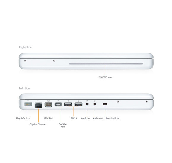 The new MacBook now comes with 1GB of memory standard and larger hard drives for the entire line perfect for running more of your favorite applications and storing growing media collections.